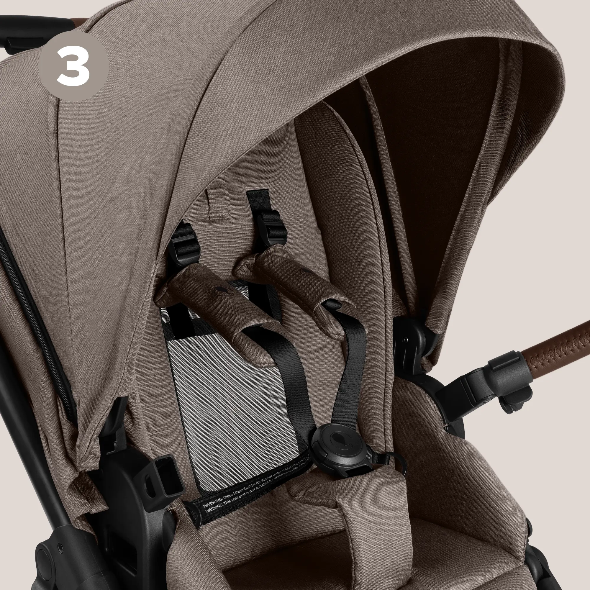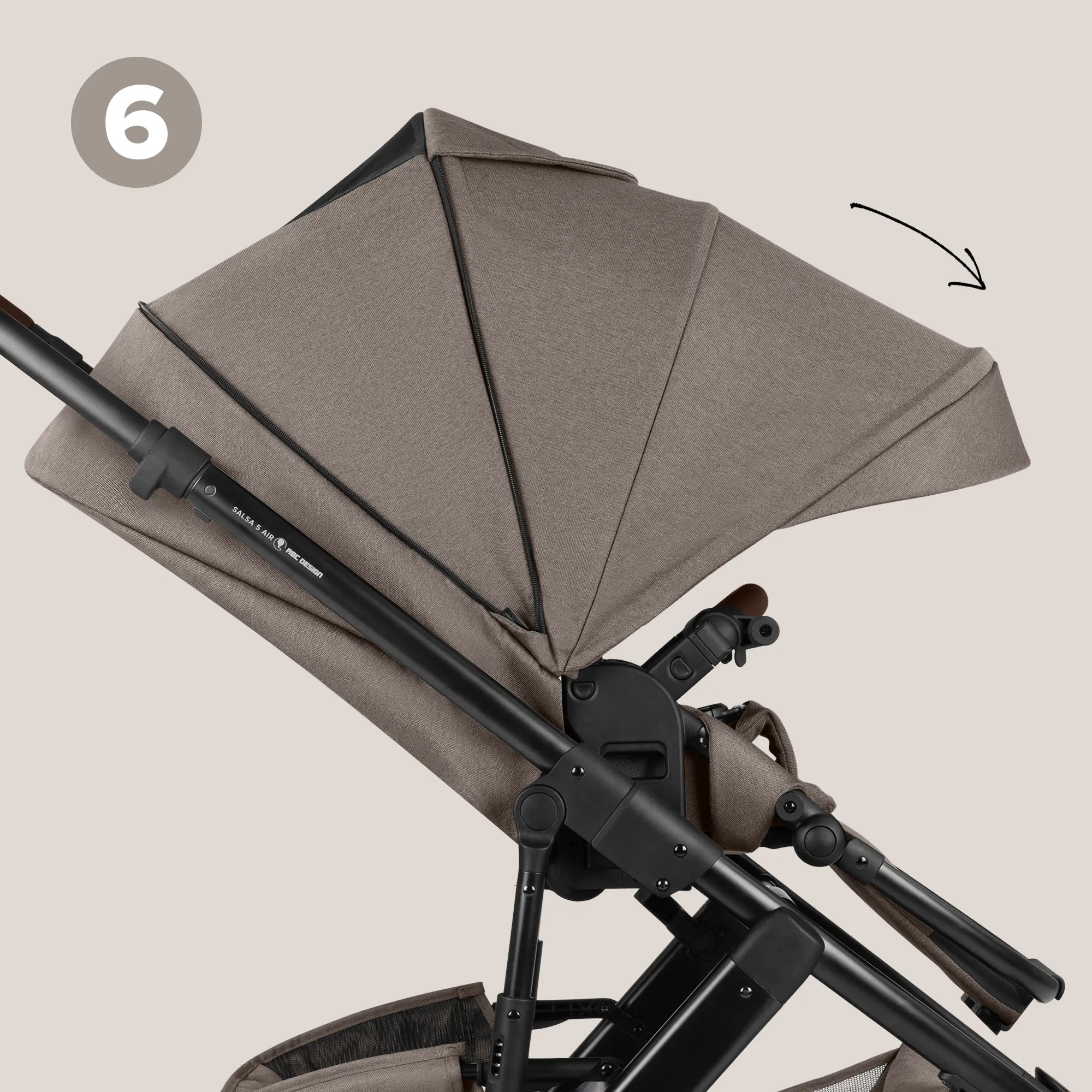 Quando hai il bambino in braccio, ora puoi comodamente ribaltare all'indietro la capottina della navicella con l'altra mano. A tal fine, basta premere brevemente il pulsante su ciascun lato per sbloccare la regolazione della capottina. Nel modello precedente Salsa 4 Air era necessario premere contemporaneamente i pulsanti di sblocco, cosa impossibile con una sola mano. Apprezzerai questo vantaggio in termini di comfort nella vita di tutti i giorni.