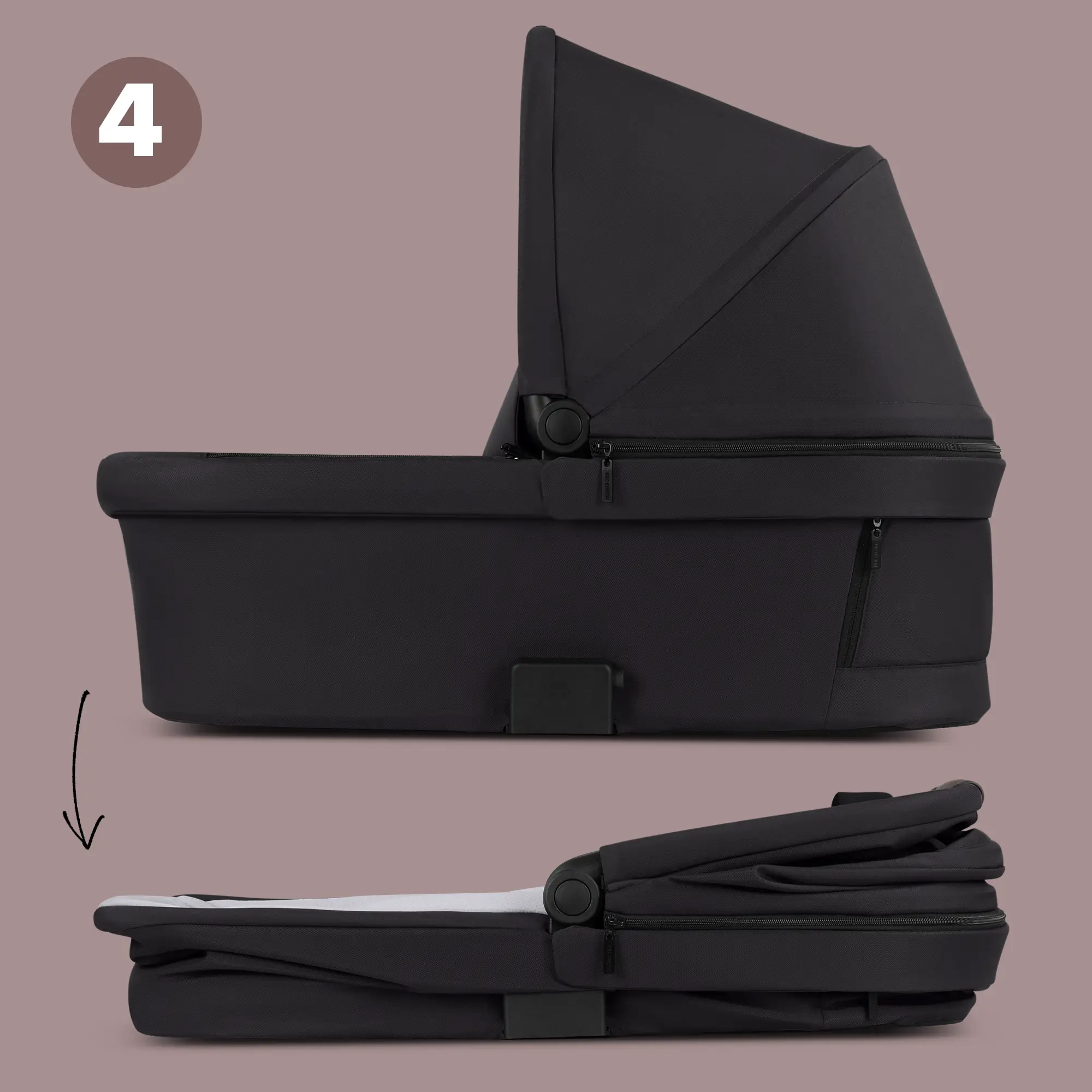 La navicella opzionale del Salsa 5 Run ora è ancora più facile da chiudere. Nella parte inferiore sono presenti 2 leve che consentono di sbloccare facilmente la navicella e poi comprimerla. Grazie alle parti di collegamento riviste sul lato, la navicella è ora anche notevolmente più piatta. Con la vecchia navicella era necessario rimuovere il materasso dall'interno e sbloccare le due staffe metalliche per ripiegarla. Ora questo non è più necessario ed è molto più comodo.