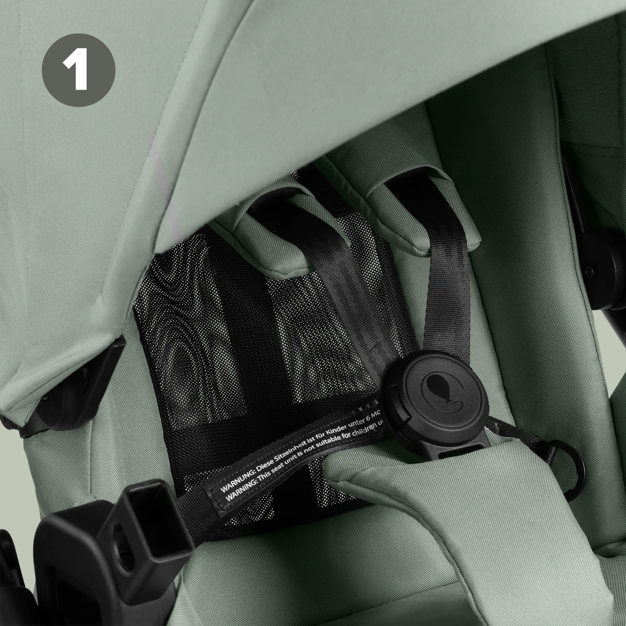 A partire dalla collezione 2025, il modello Samba 2 sarà dotato del nostro nuovo HappyBelt® Sistema di cintura sportiva a 5 punti. Ciò renderà molto più comodo salire e scendere dal seggiolino. Le tracolle leggermente sporgenti non saranno più d'intralcio. Ora puoi regolare la lunghezza della cintura in pochi secondi. La chiusura della cintura è dotata di un magnete. Puoi chiuderla in modo semplice e sicuro con una sola mano. Nel modello precedente Samba, allacciare la cintura era molto più complicato e servivano sempre entrambe le mani.