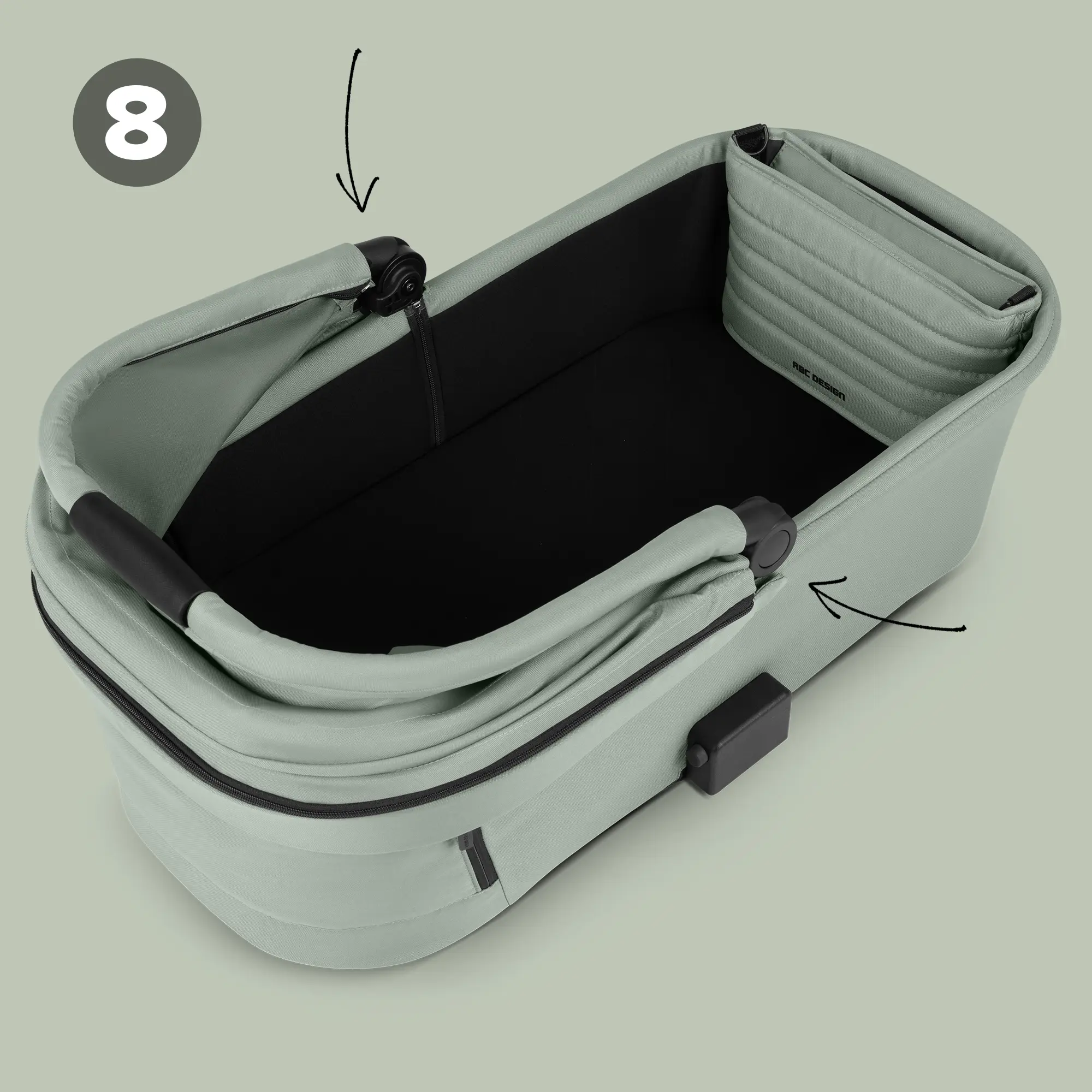La nostra nuova navicella per neonati ora è ancora più facile da chiudere. Nella parte inferiore sono presenti due leve che consentono di sbloccare facilmente la navicella e poi comprimerla. Grazie alle parti di collegamento riviste sul lato, la navicella è ora anche notevolmente più piatta. Con la vecchia navicella, per ripiegarla era necessario rimuovere il materasso dall'interno e sganciare le due staffe metalliche. Ora questo non è più necessario e l'operazione è molto più comoda. La navicella non è inclusa nella dotazione del Samba 2 ed è disponibile come accessorio.
