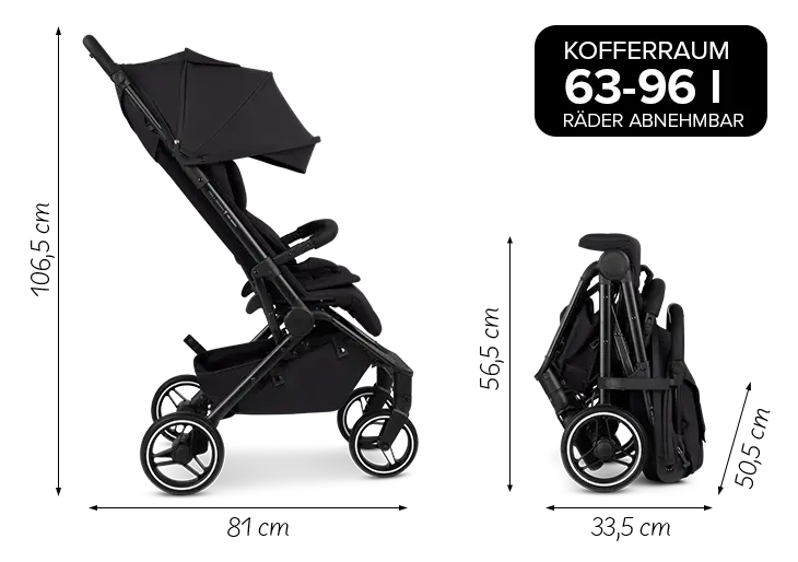 Che tu stia viaggiando in auto, in camper, in autobus o in treno, il passeggino Ping 3 Trekking, leggero e maneggevole, ti accompagna in ogni escursione e in ogni viaggio. Può essere facilmente guidato, piegato e aperto con una sola mano. Grazie alle sue dimensioni particolarmente compatte, pari a quelle di un bagaglio a mano, puoi portarlo facilmente con te in aereo.